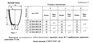 Таблица 5. Размеры
