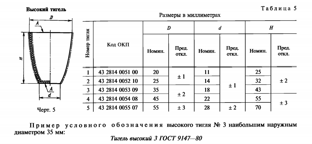 Высокий тигель